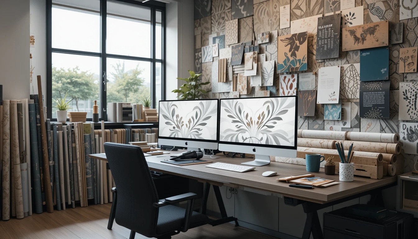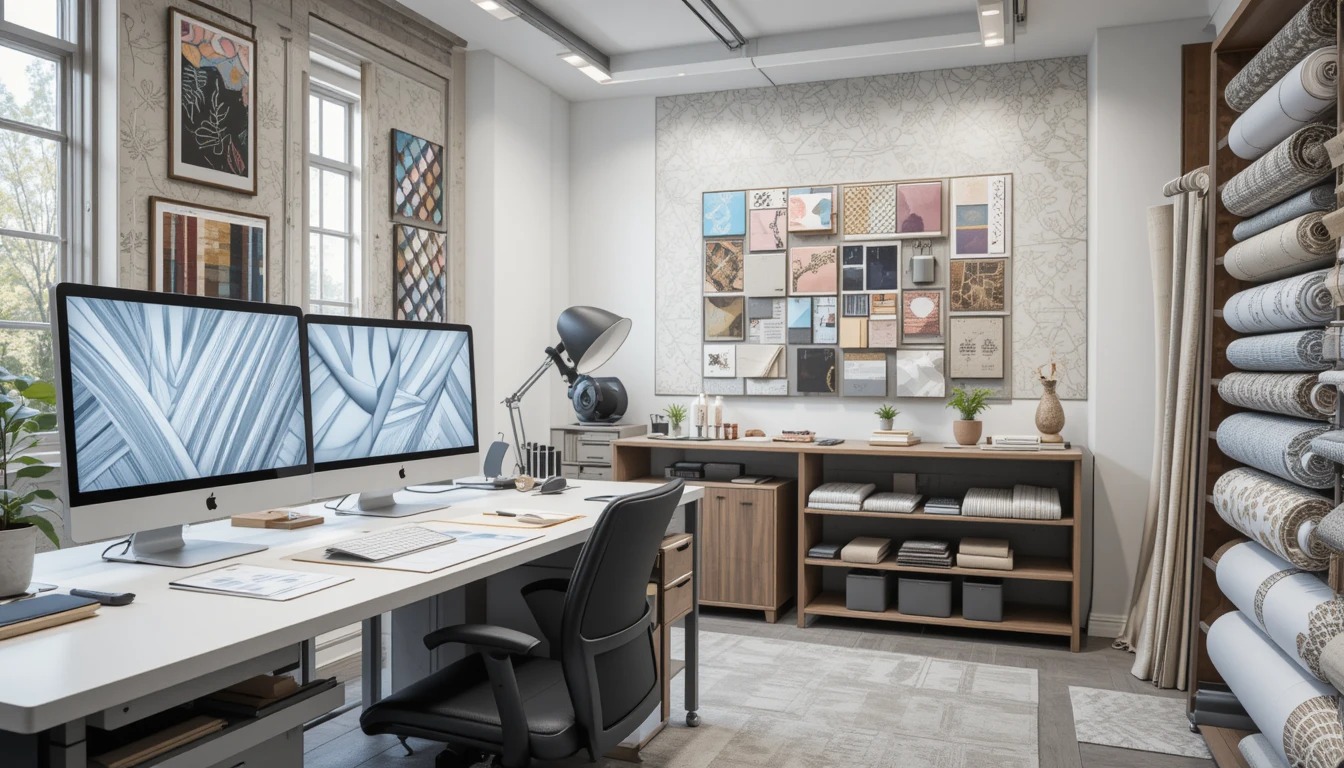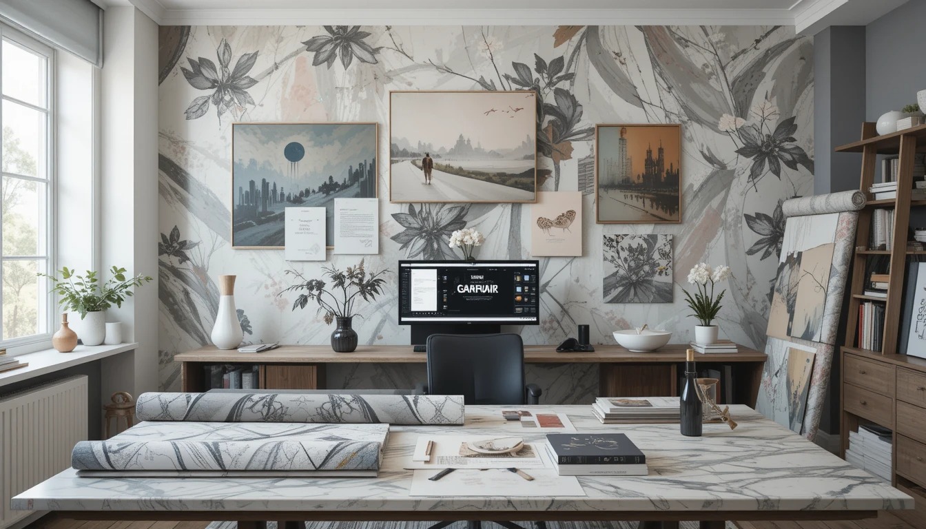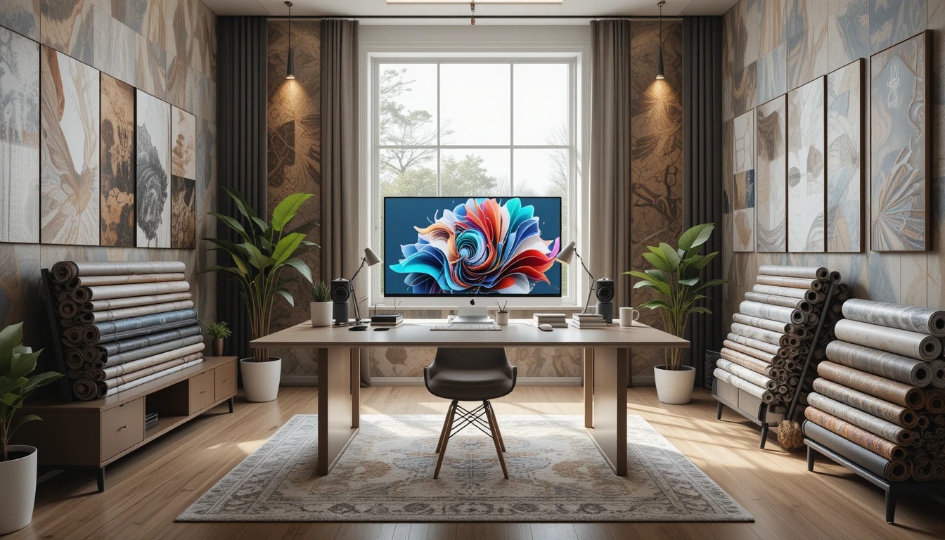 The Technical Consultants' Workspace with Cutting-Edge Tools and Wallcoverings
